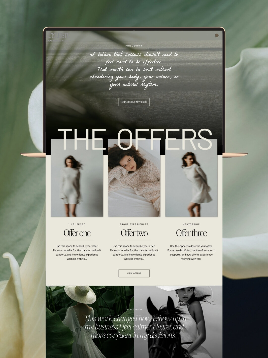 You shouldn’t have to choose between affordability and a website that feels truly yours. These templates are created to give you that custom, elevated look without the custom price point. Designed with intention, so you can build a brand that feels personal, unique, and aligned, without starting from scratch.